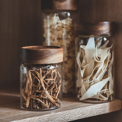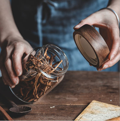 Pot en verre transparent de Logo Empty Wooden Lid Clear de boîtes métalliques faites sur commande écologiques de cuisine