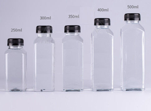 12 oz SANS BPA French Square Plastic PET Juicer Bottle For Orange Fruit Plastic Drinking Bottles
