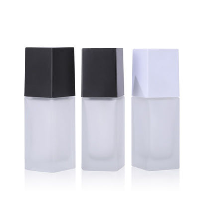 Bouteille cosmétique en verre givrée claire de lotion de conteneurs de pompe d'émulsion carrée