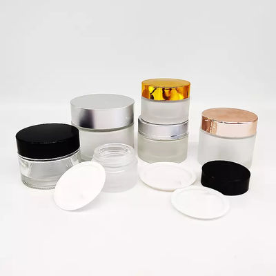 le pot en verre cosmétique clair de 5ml 10ml 20ml 30ml 50ml 60ml 80ml 100ml avec des cosmétiques de luxe d'argent du couvercle 100ml cognent le conteneur en verre