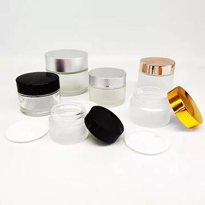 Pot en verre cosmétique clair en gros avec les conteneurs cosmétiques en verre de luxe argentés du couvercle 100ml