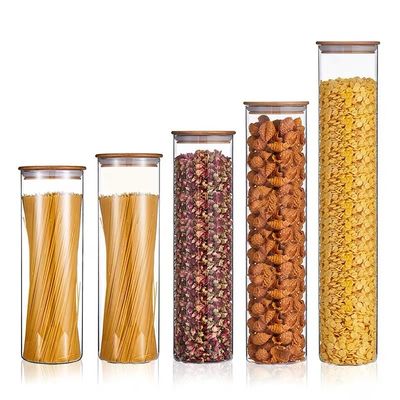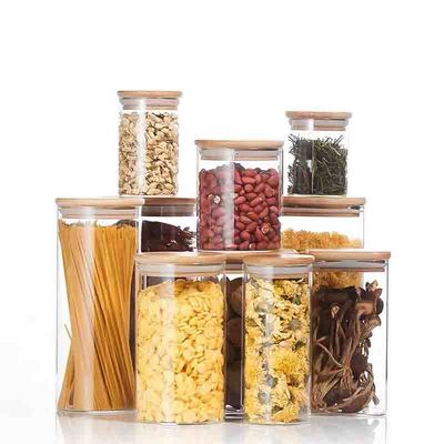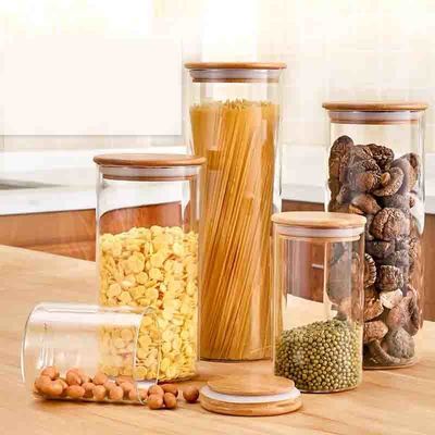 Le stockage en verre met le stockage en bouteille en verre serré de fruits secs d'entreposage en pot d'air avec le couvercle en bambou