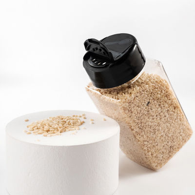 Les couvercles de ces bouteilles en plastique d'épice sont les dessus bilatéraux de secousse pour les épices de secousse ou de versement.
