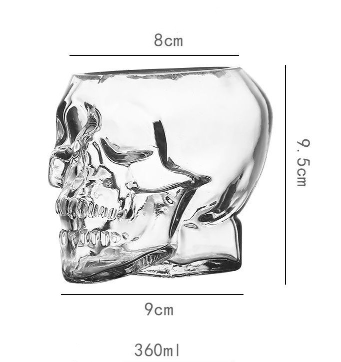 Fait du verre de borosilicate de haute qualité, la forme d'un crâne transparent a un sens unique de conception. Peut être employé dans la barre ou la maison. Avec une capacité de 50ml 80ml 150ml 350ml 700ml, elle peut tenir les cocktails, le whiskey, la tequila et les divers types de boissons de fruit.